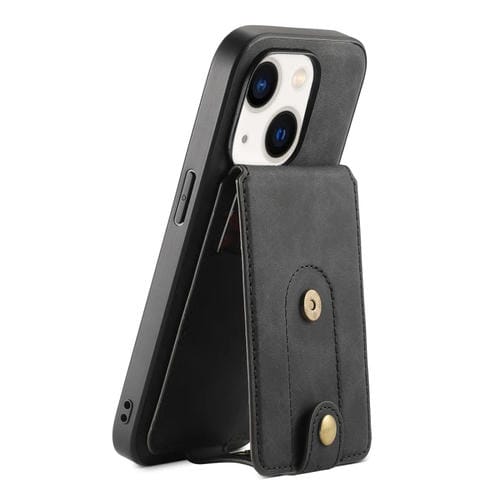 For iPhone 14/13 Denior D14 NK Leather Phone Case with MagSafe Magnetic Card Holder Retro Pattern (Black)