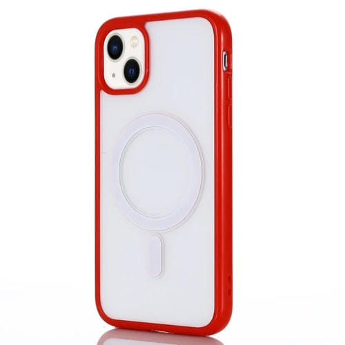 Estuche de teléfono 2 en 1 para iPhone 14 magnético Transparente con marco rojo