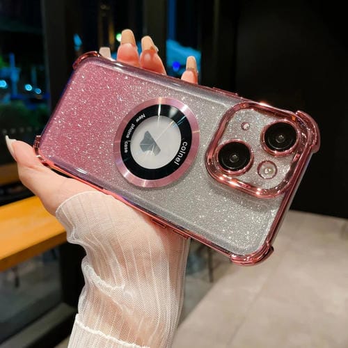 Estuche para Teléfono iPhone 14 Magsafe 6D Armadura Brillo Degradado Galvanoplastia (Rosa)