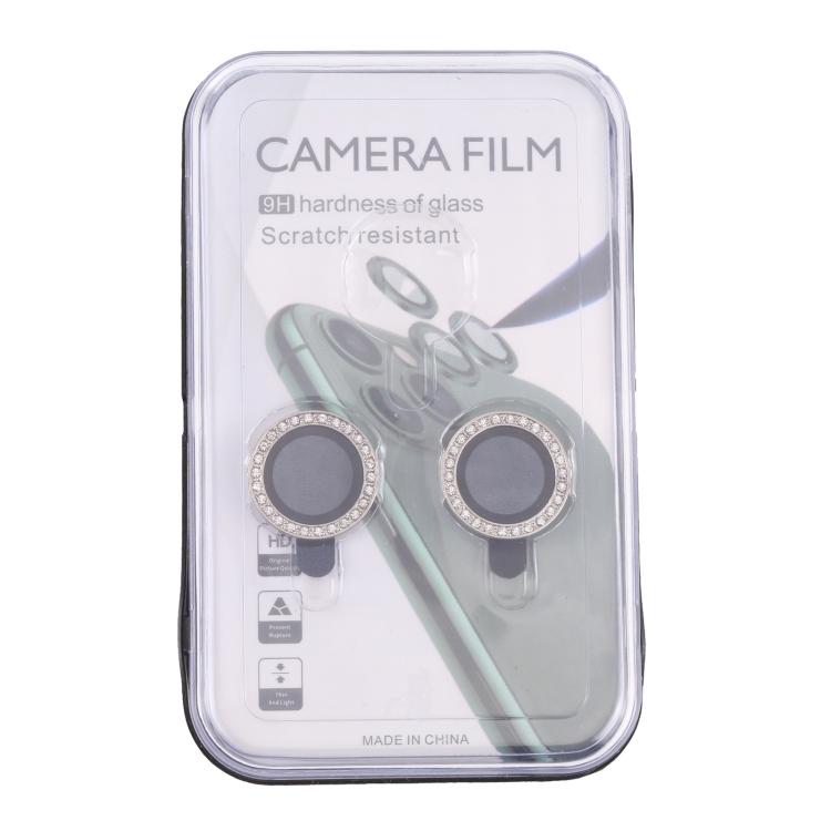 Protector de Lente Cámara iPhone 14 9H Point Drill Film Circle (Plata)