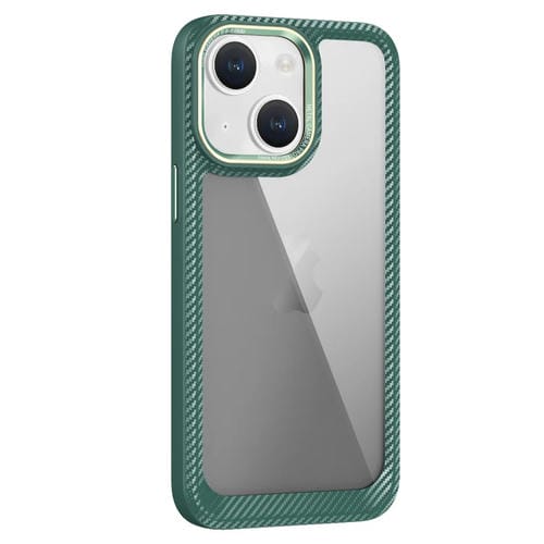 For iPhone 14 Phone Case with Carbon Fiber Clear Back Panel (Green)
