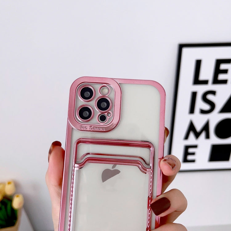 Caja de teléfono para iPhone 14 con ranura para tarjeta y marco de galvanoplastia (Azul)