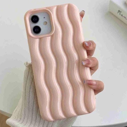 Caja de teléfono iPhone 14 con textura de onda de agua 3D barnizada (Rosa)