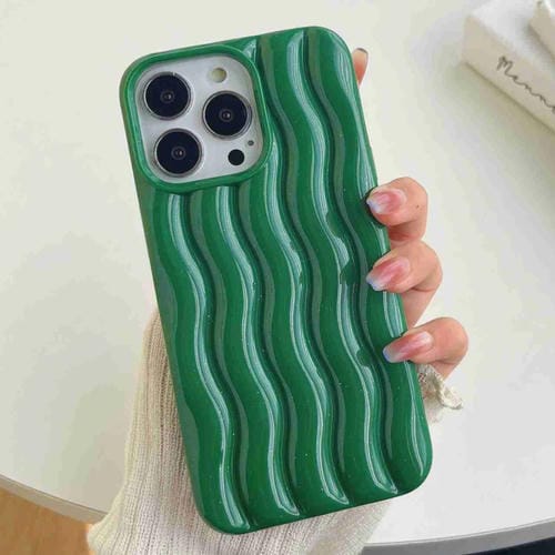 Caja de Teléfono para iPhone 14 Textura Onda de Agua 3D Barnizada (Verde Oscuro)