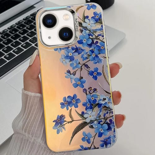 Caja de teléfono para iPhone 14 TPU con textura de flor láser de galvanoplastia (Myosotis Ah2)