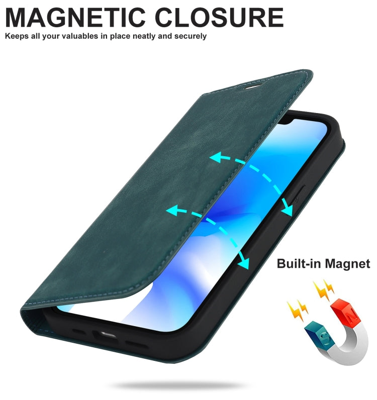Funda de Cuero para Teléfono iPhone 14 Carga Inalámbrica Magsafe (Azul)