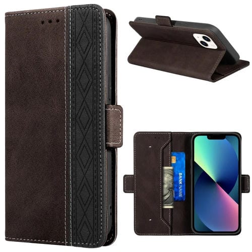 Funda para iPhone 14 Costura Magnética Rfid de Cuero (Café)