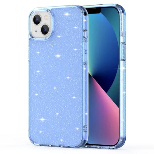 Funda para iPhone 14 Crystal Clear Glitter Airbag Phone Case Transparente Sierra Blue