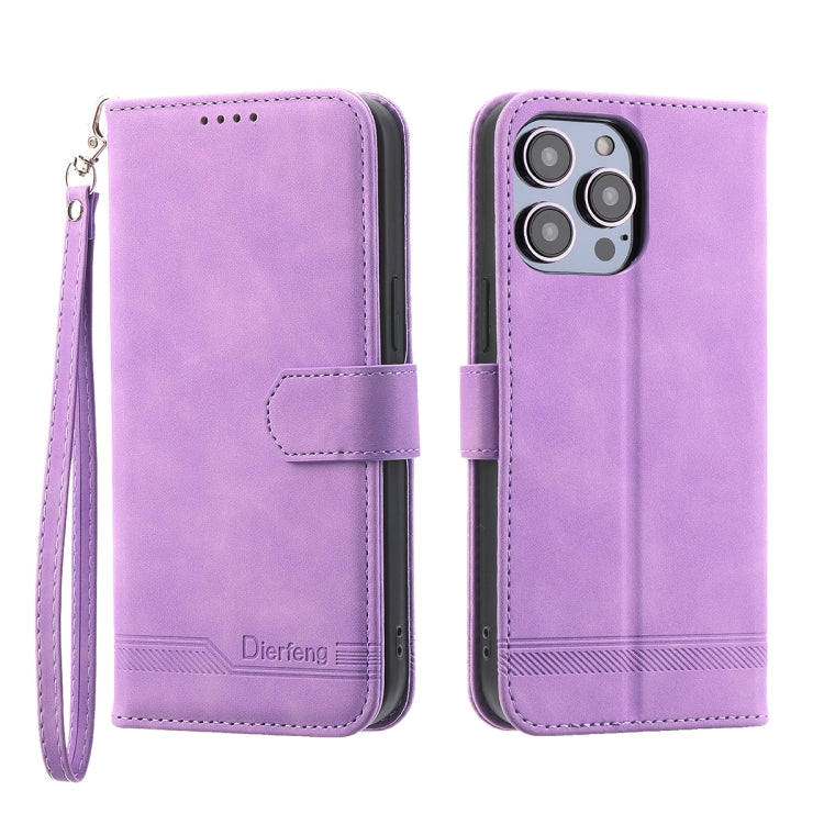 Funda para iPhone 14 Dierfeng Dream Line TPU y Cuero PU (Púrpura)