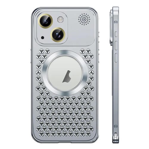 Estuche para teléfono iPhone 14 Metal Magnético Magsafe Aromaterapia Hebilla de Resorte (Plateado)