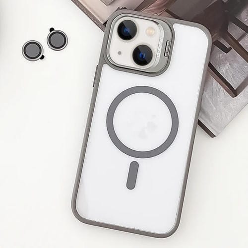 Estuche para Teléfono iPhone 14 TPU Híbrido Acrílico Magsafe con Soporte y Película para Lentes (Gris)