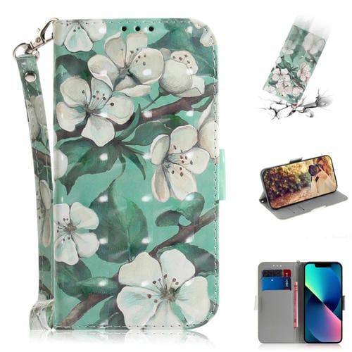 Estuche para Teléfono iPhone 14 Cuero con Tapa Horizontal Color 3D (Flor de Acuarela)