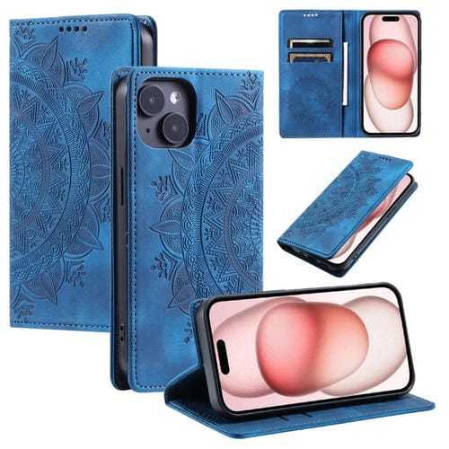 For iPhone 14 Totem Embossed Magnetic Leather Phone Case (Blue)