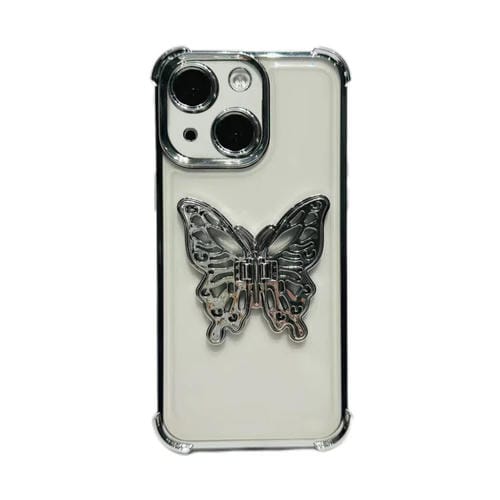 Estuche para Teléfono TPU para iPhone 14 con Soporte de Mariposa 3D Galvanizado (Plateado)
