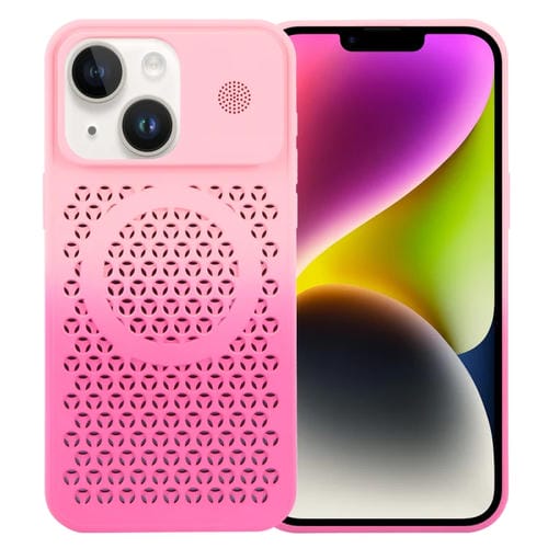 Estuche para Teléfono iPhone 14 Magsafe Aromaterapia Enfriamiento de Panal (Rosa + Rojo Rosa)