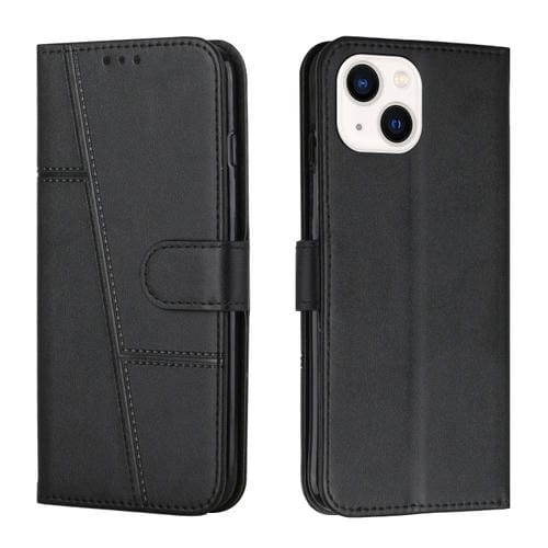 Funda de Teléfono iPhone 14 Cuero Hebilla Textura Becerro Cosida (Negro)