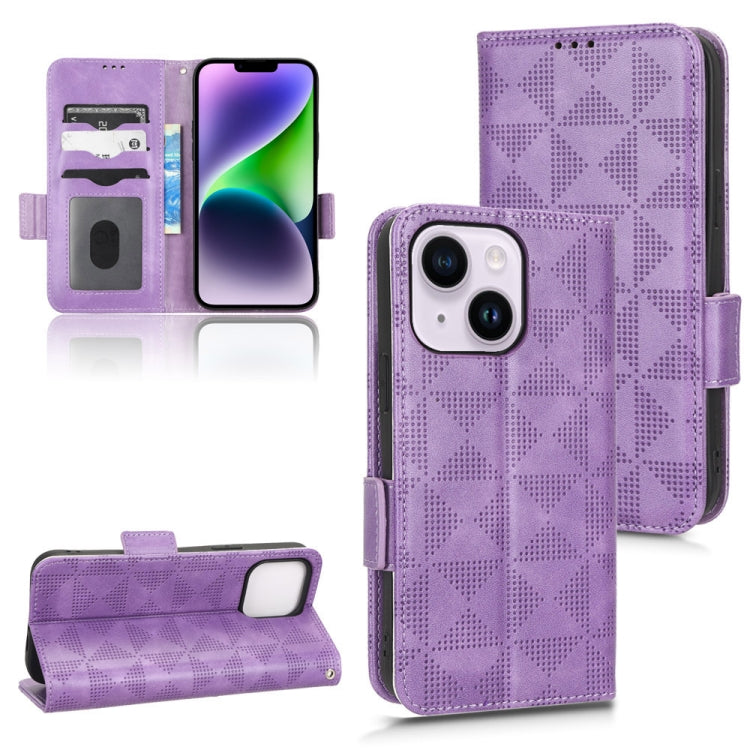 For iPhone 14 Symmetrical Triangle Leather Phone Case (Purple)
