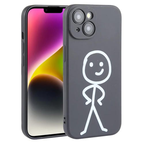 Funda de teléfono iPhone 14 Silicona Líquida Patrón Stickman (Negro)