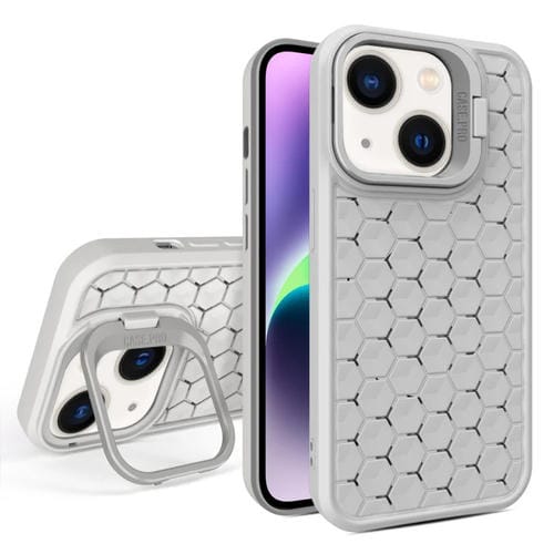For iPhone 14 Magnetic Phone Case with Honeycomb Radiant Lens Holder (Gray)