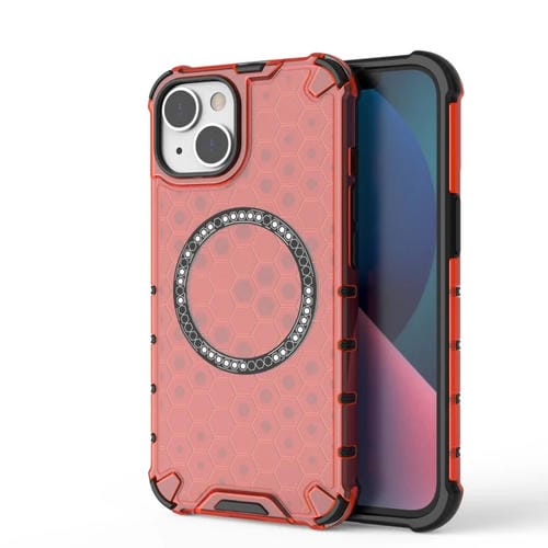 For iPhone 14 Shockproof Phone Case with Honeycomb Magnetic Ring (Red)
