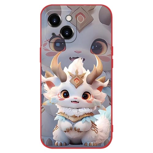 Funda para Teléfono iPhone 14 Silicona a Prueba de Golpes (Roja) (Dragón Blanco)