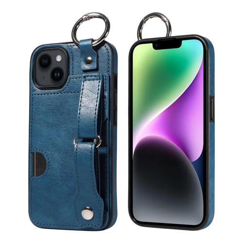 Funda para Teléfono iPhone 14 con Anillo y Ranura para Tarjeta Textura de Pantorrilla (Azul)