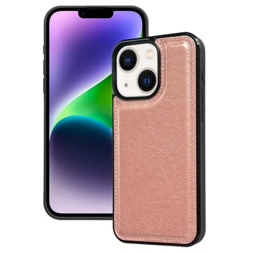 Funda para Teléfono iPhone 14 con Contraportada Textura Piel de Vaca (Oro Rosa)