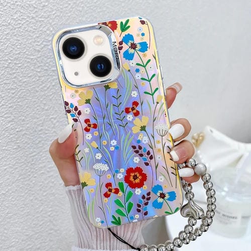 Funda para Teléfono iPhone 14 Flor Láser Galvanizada con Correa para la Muñeca (Flor Ah6)
