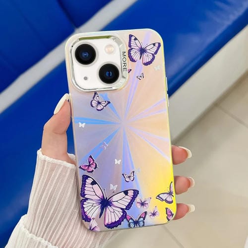 Funda para Teléfono iPhone 14 Mariposa Láser Galvanizada (Ab3)