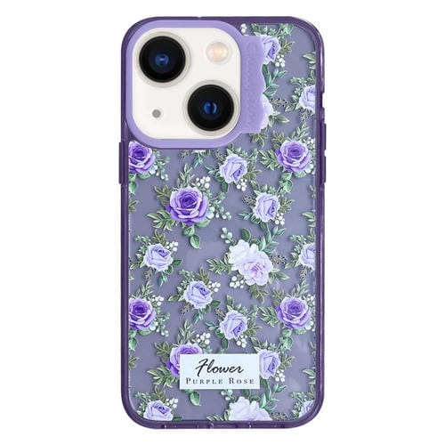 Funda para Teléfono iPhone 14 Patrón Círculo de Ondas Coloridas (Flor Morada)