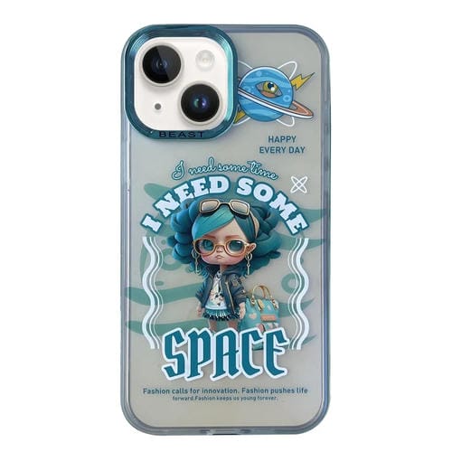 Funda para Teléfono iPhone 14 Serie Aurora Patrón Pintado (Gafas Niña)