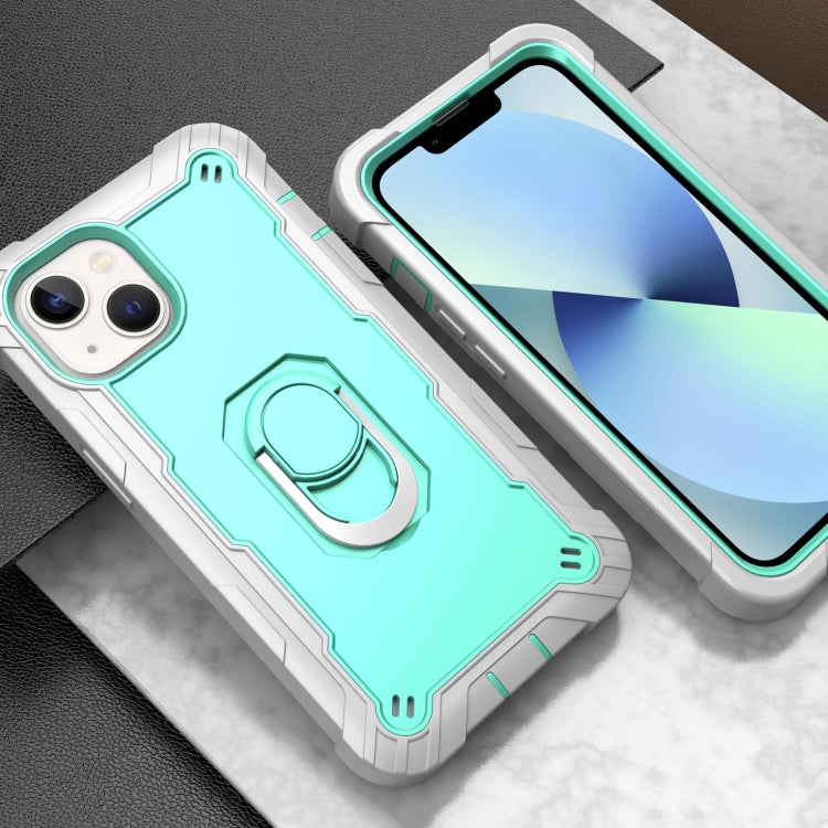 Funda para Teléfono iPhone 14 con Soporte de Anillo Dos Colores (Gris Blanco + Verde Menta)