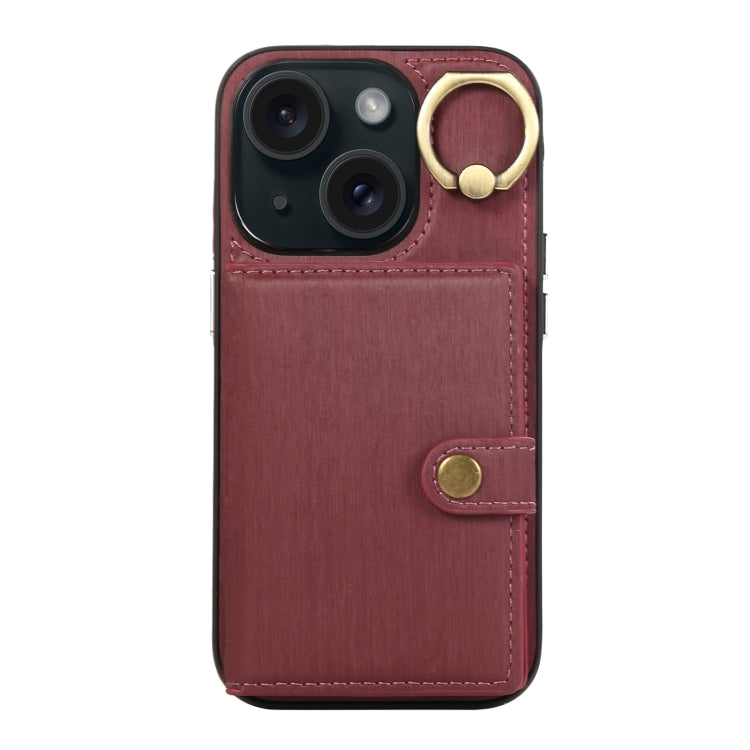 For iPhone 14 Case Brushed Texture Wallet Ring Holder Phone Case (Wine Red)