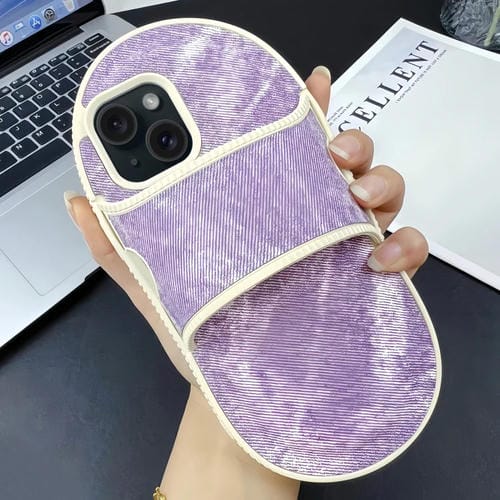 Funda para Teléfono TPU iPhone 14 Diseño Zapatilla de Mezclilla (Rosa Morado)