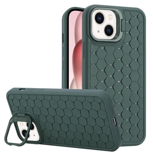 Funda para teléfono iPhone 14 TPU con soporte para Lente Radiante de Panal (Verde)