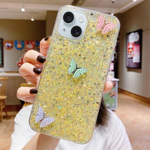 Funda para Teléfono TPU Epoxi iPhone 14 Lentejuelas Estrelladas Diamantes (Amarillo)