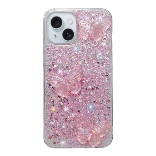 For iPhone 14 Starry Sequins Crystal Butterfly Epoxy TPU Phone Case(Pink)