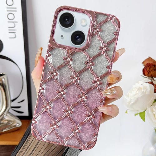Funda para Teléfono TPU Galvanizada iPhone 14 con Flor de Estrella y Papel Brillo Degradado (Rosa)