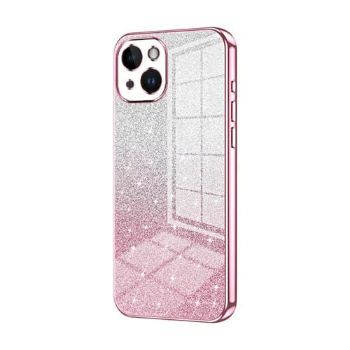 Funda para Teléfono iPhone 14 Galvanizada con Polvo de Brillo Degradado (Rosa)