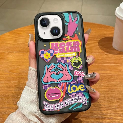 Funda para Teléfono iPhone 14 Noctilucente con Graffiti Corazón