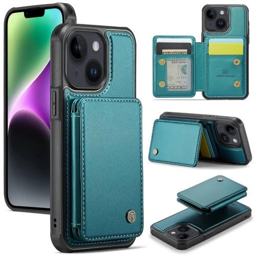 Estuche para Teléfono Jeehood J05 para iPhone 14 Cuero Rfid Magnético Empresarial (Azul Verde)