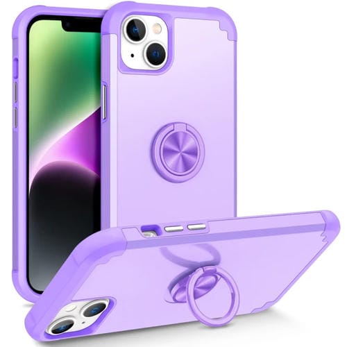 Funda Magnética para iPhone 14 L2 con Soporte de Anillo Giratorio (Púrpura Claro)