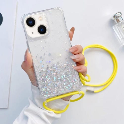 Funda para iPhone 14 Lanyard Glitter Epoxy Clear Phone Case (Amarillo)