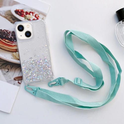 Funda para iPhone 14 Lanyard Glitter Epoxy Clear Phone Case (Azul)
