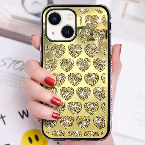 Funda para iPhone 14 Love Hearts Diamond Mirror TPU Phone Case (Oro)