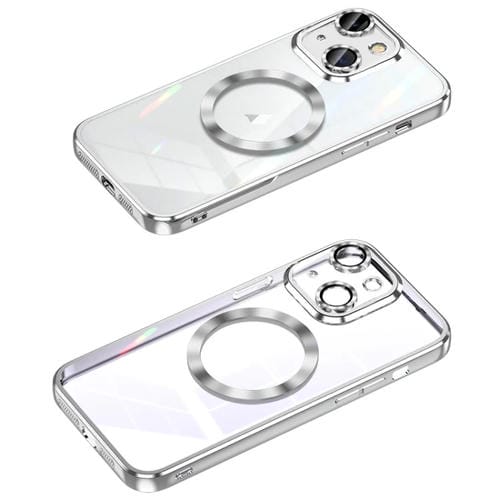 Estuche para iPhone 14 Magsafe Marco de Lente de Metal Cobertura Total (Plata)