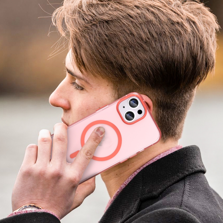 For iPhone 14 MagSafe Frosted Translucent TPU+PC Full Coverage Phone Case (Red)