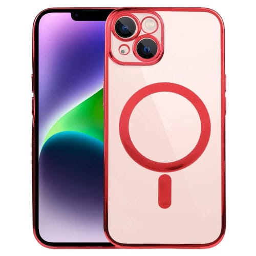 Funda para iPhone 14 Magsafe Galvanoplastia Straight TPU Phone Case (Rojo)