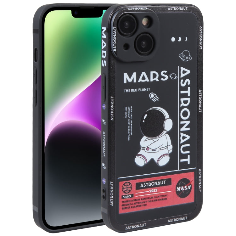 For iPhone 14 Astronaut Pattern Silicone Straight Edge Phone Case (Mars Astronaut-Black)