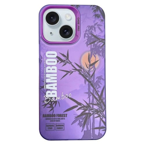 Funda para iPhone 14 TPU + PC Pintura al Óleo Paisaje Colorido Atardecer (Bambú Morado)